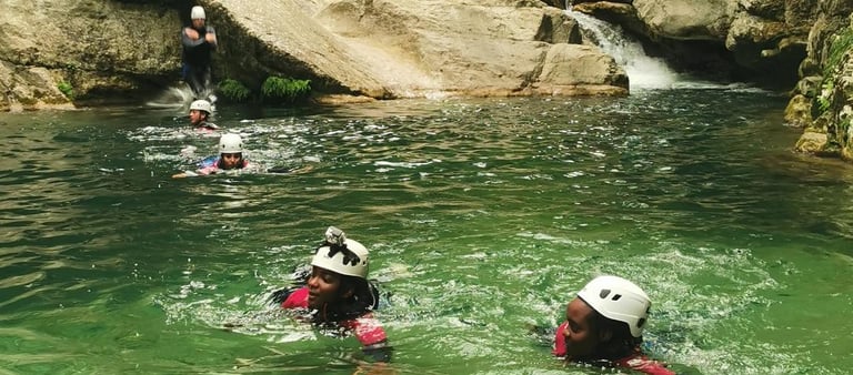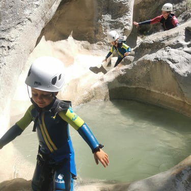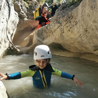 Ce canyon est spécialement prévu pour les tous petits et adapté à leur taille : de petites vasques, des mini sauts de 50cm, des toboggans allant jusqu'à 1M50. Nos guides vous feront participer avec vos enfants a un vrai échange et une découverte du milieu naturel en toute sécurité.