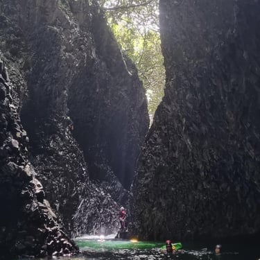 Le décor est grandiose ! Vous retrouverez des orgues basaltiques, des cascades sculptées et une ambiance jungle : un canyon fluide, immersif, où la beauté du lieu rivalise avec le plaisir de la progression.